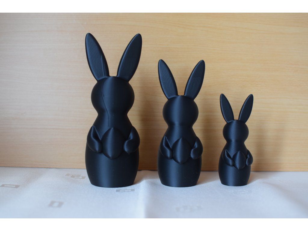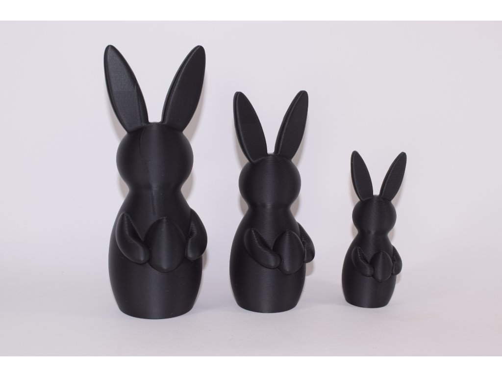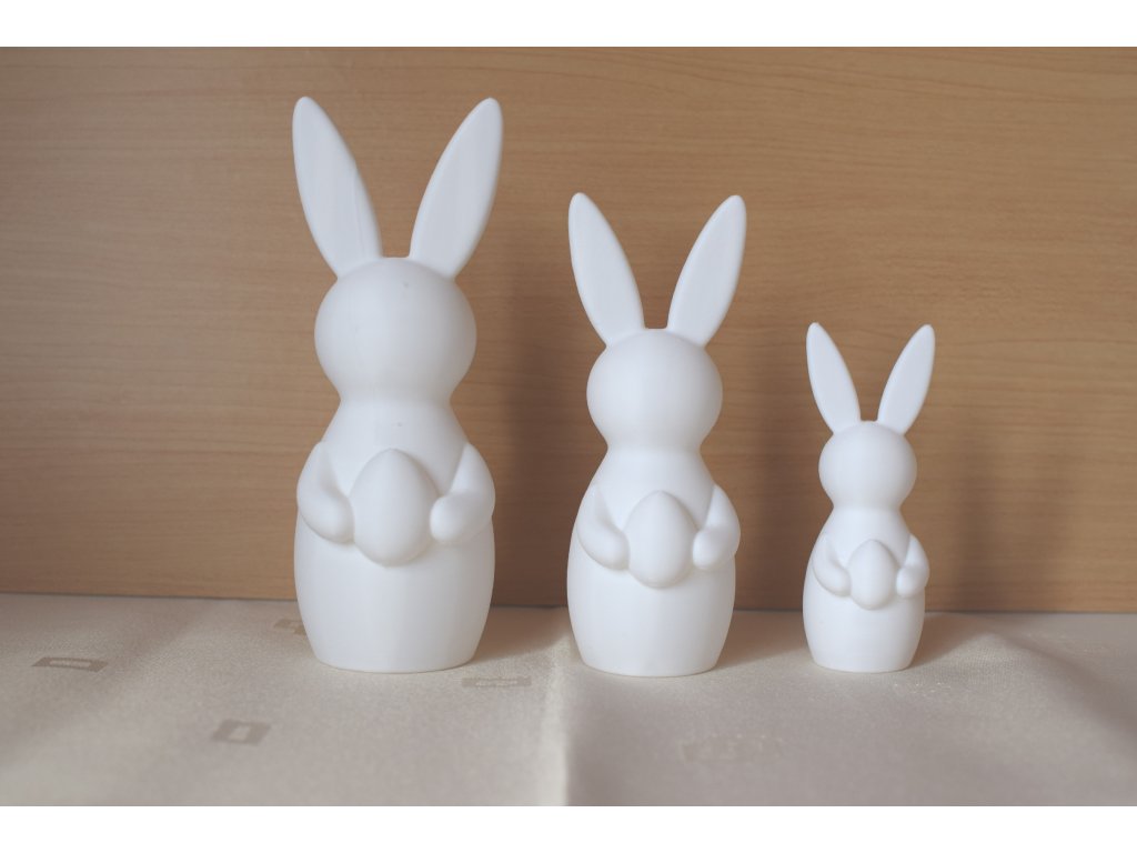 Sada troch veľkonočných zajacov je vyrobená technológiou 3D tlače z kvalitného PLA materiálu. Každý zajac drží vajíčko, ktoré symbolizuje jar, nový začiatok a sviatočnú pohodu.