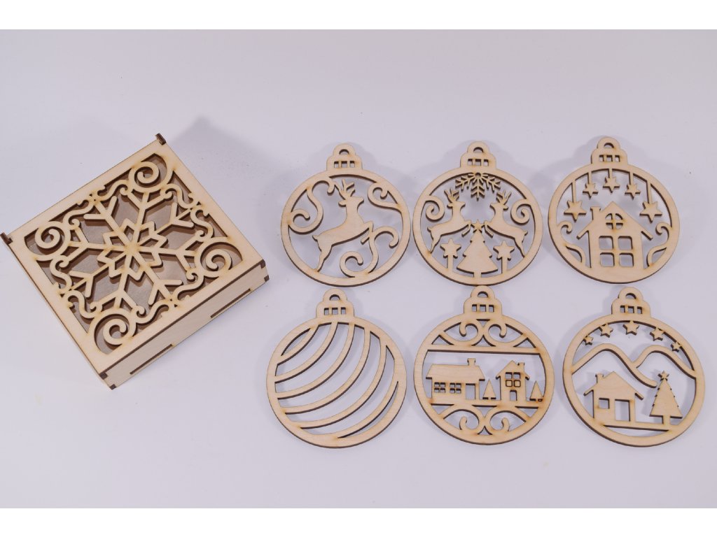 Darčekové sady drevených vianočných ozdôb v drevenej krabičke