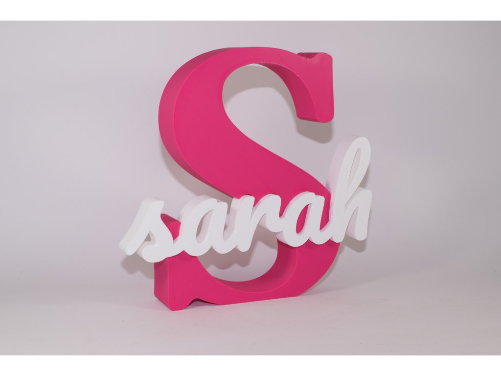 Dekoratívne písmeno s menom vyrobené pomocou 3D tlače je štýlový a osobný doplnok do interiéru. Dominantná iniciála doplnená menom vytvára výraznú dekoráciu, ktorá krásne vynikne na poličke, komode alebo v detskej izbe.
