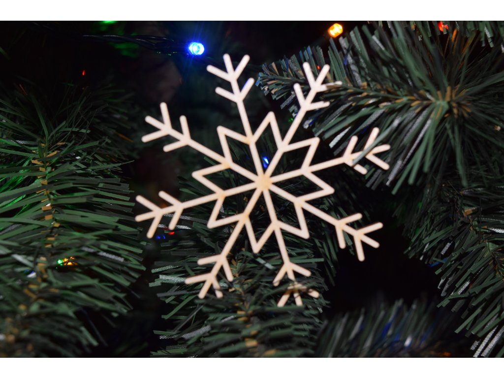 Jemná drevená vločka vyrezávaná laserom prinesie do vášho domova prírodné čaro Vianoc. Ideálna na stromček, veniec alebo balenie darčekov.