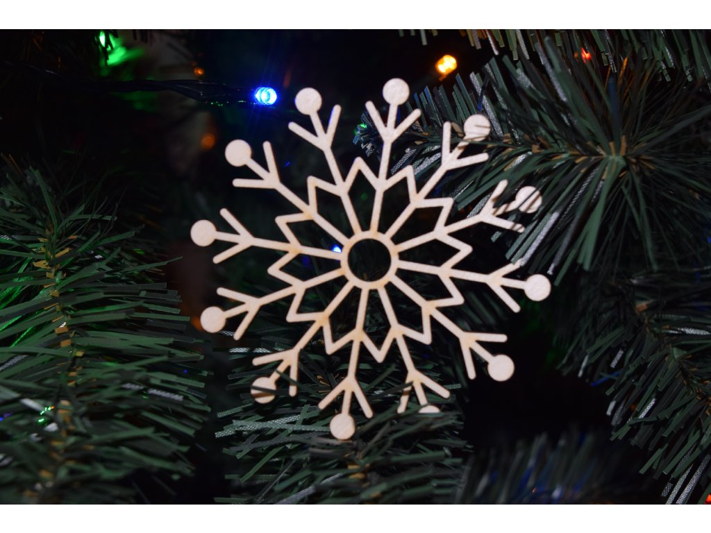 Vyberte si túto drevenú vločku, ak preferujete prírodné a udržateľné dekorácie. Vyrezaná z brezovej preglejky, ponechaná bez farby, skvele ladí s kovovými, textilnými aj rastlinnými prvkami. Používajte ju na stromčeku, v aranžmánoch alebo ako prvok darčekového balenia. Prírodný vzhľad prinesie do domácnosti pokoj a autentickú vianočnú atmosféru.