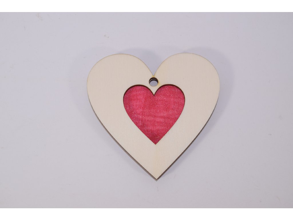 Romantická drevená ozdoba v tvare srdca s červeným lineckým stredom. Ideálna na stromček aj ako darček.