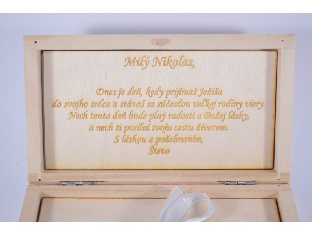 - Personalizované gravírovanie: Každá krabička je jedinečná vďaka možnosti gravírovať vlastný text, báseň alebo venovanie, čo dodáva darčeku osobný dotyk.