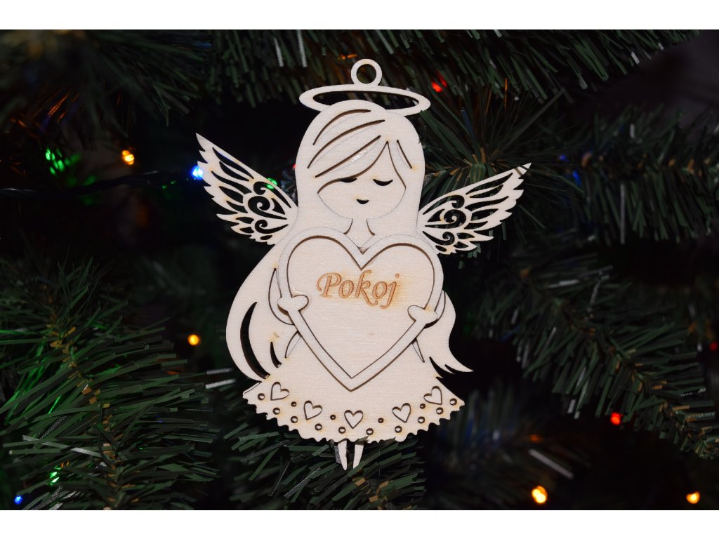 Drevený 3D anjelik so želaním „Pokoj“ – vianočná ozdoba z preglejky