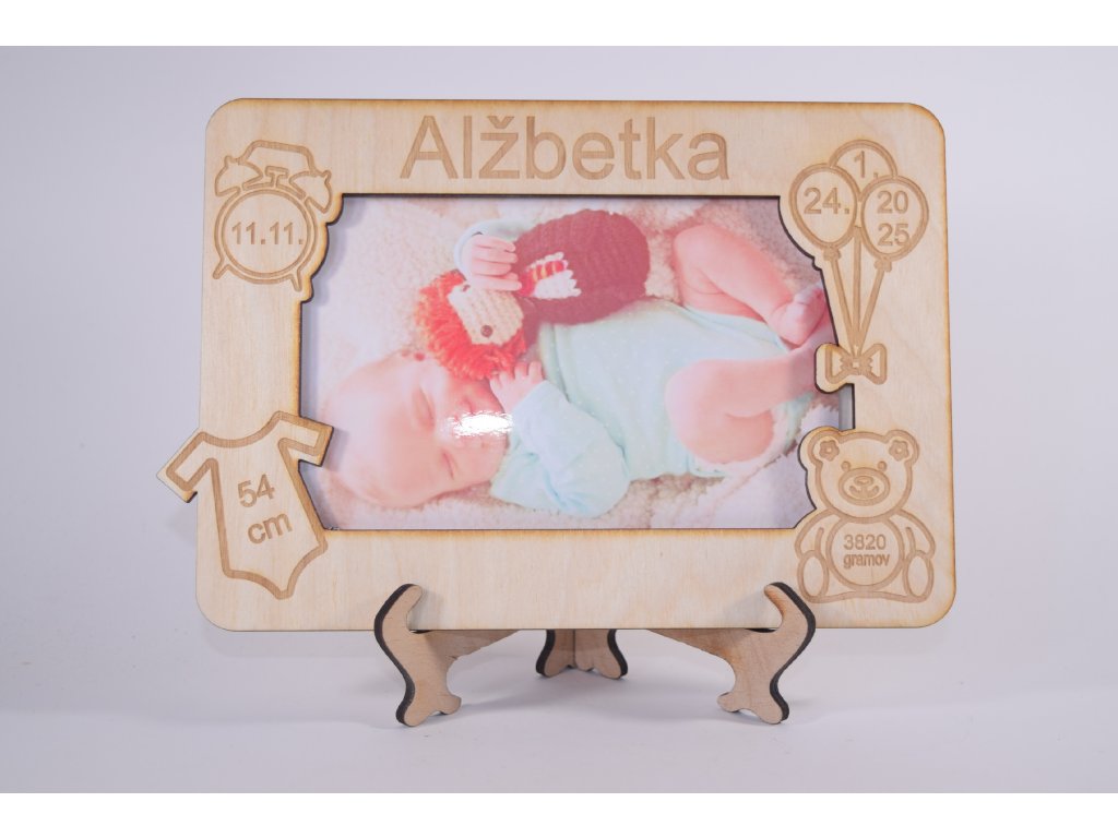 Drevený rámček na krstiny s gravírovanými údajmi o narodení 2