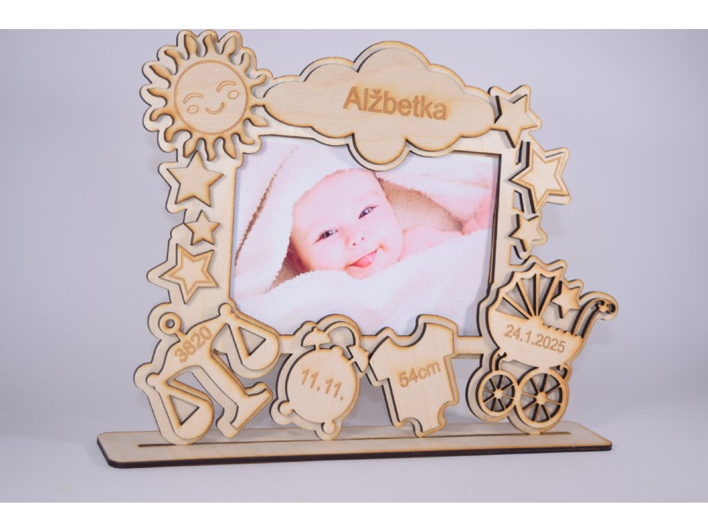 Do stredu rámčeka môžete vložiť fotografiu bábätka, vďaka čomu sa stane jedinečnou pamiatkou na jeho prvé chvíle života.