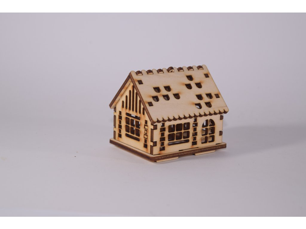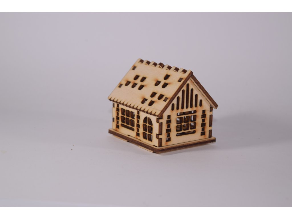 Drevený domček s precíznym laserovým gravírovaním, ideálny na vianočné dekorácie, maľovanie alebo doplnenie do zimnej krajinky.