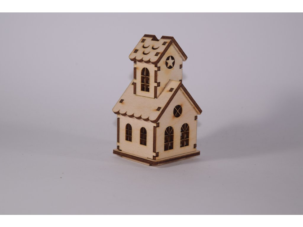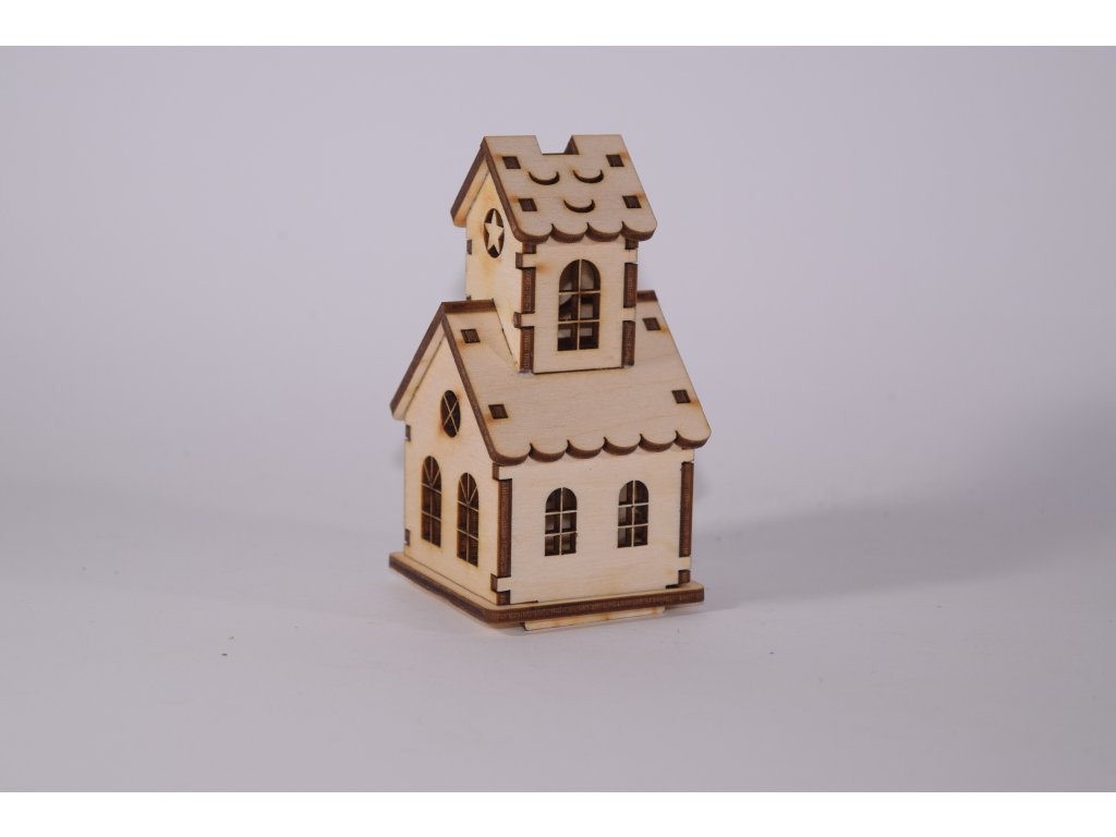 Drevený domček s precíznym laserovým gravírovaním, ideálny na vianočné dekorácie, maľovanie alebo doplnenie do zimnej krajinky.