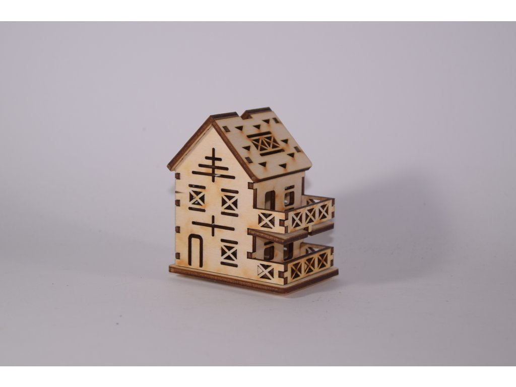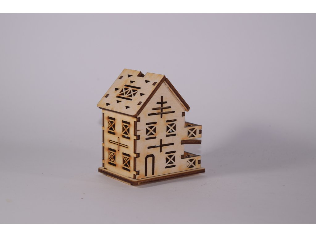 Drevený domček s precíznym laserovým gravírovaním, ideálny na vianočné dekorácie, maľovanie alebo doplnenie do zimnej krajinky.