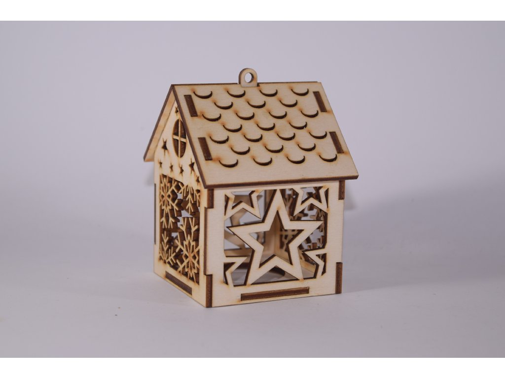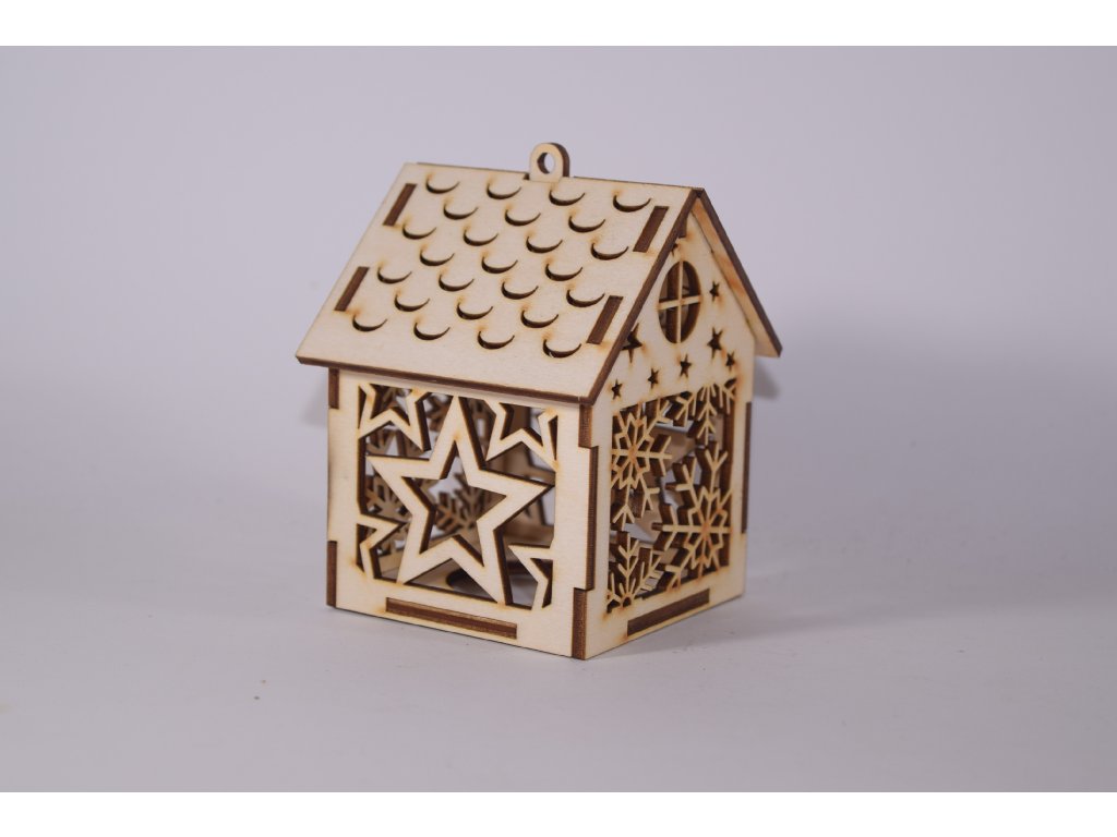 Elegantný vyšší domček z prírodnej preglejky s otvorom na blikajúce LED svetielko. Ideálny ako vianočná dekorácia alebo handmade doplnok.