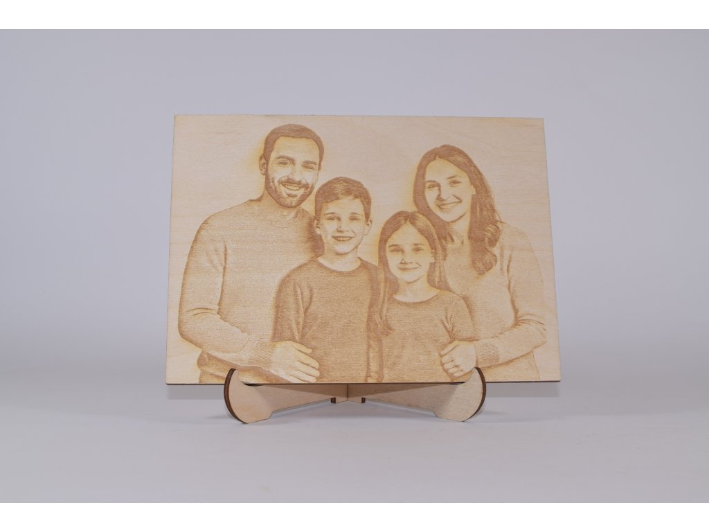 Rodinná fotografia premenená na trvalú spomienku vygravírovanú laserom do dreva. Každý kus vyrábam na mieru z vašej fotografie.