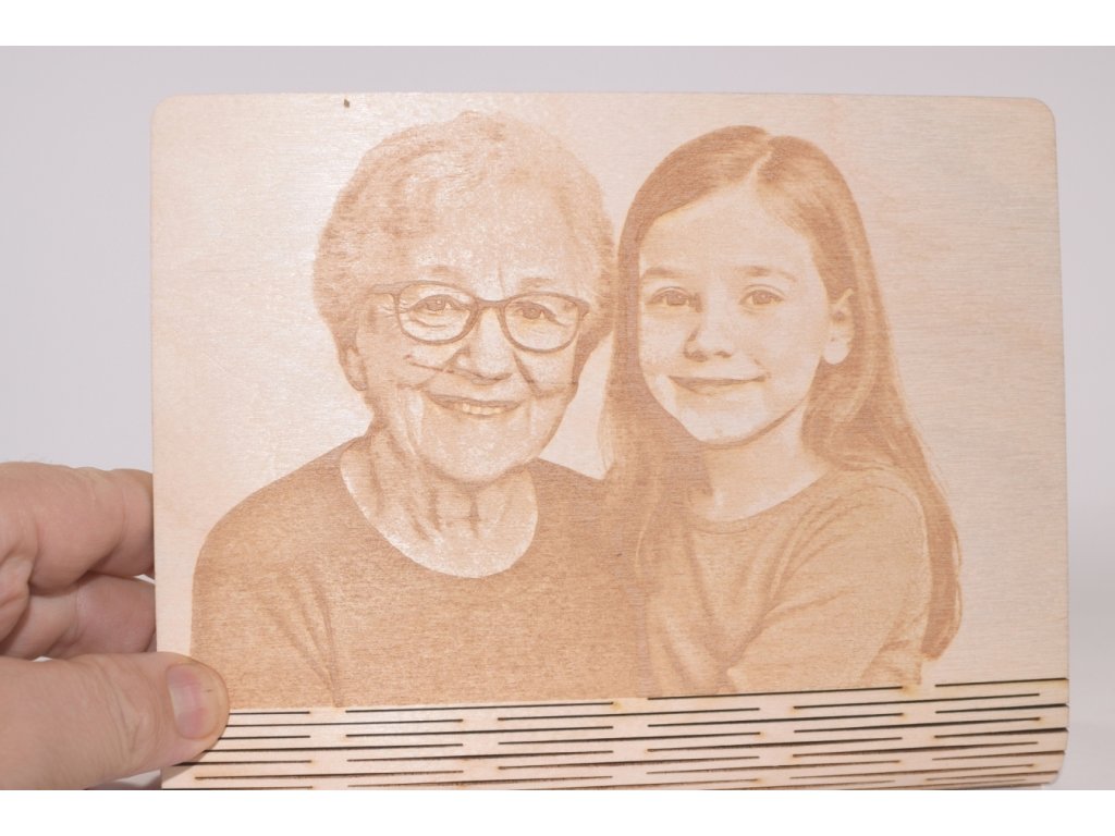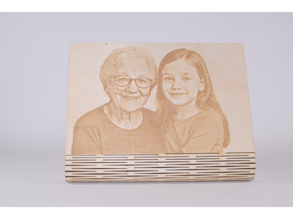 Rodinná fotografia premenená na trvalú spomienku vygravírovanú laserom do dreva. Každý kus vyrábam na mieru z vašej fotografie.