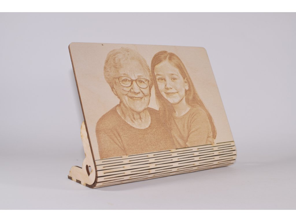 Gravírovaná fotografia na dreve – portrét so stojančekom na šírku