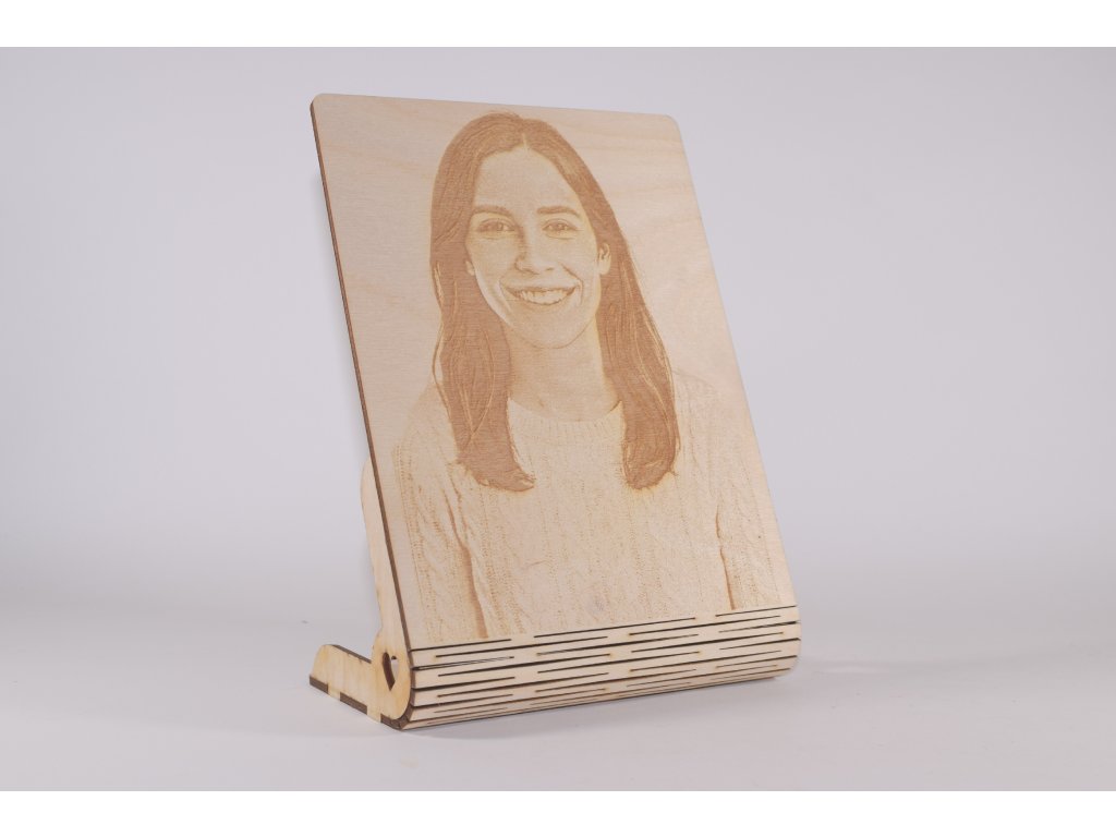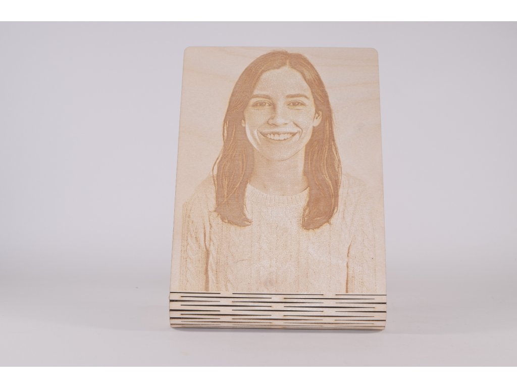 Gravírovaná fotografia na dreve – portrét so stojančekom