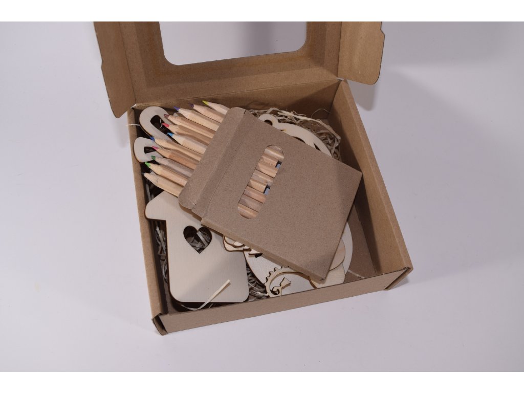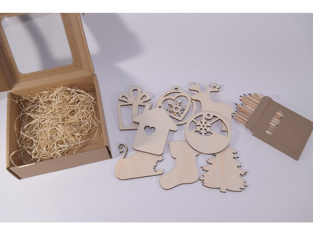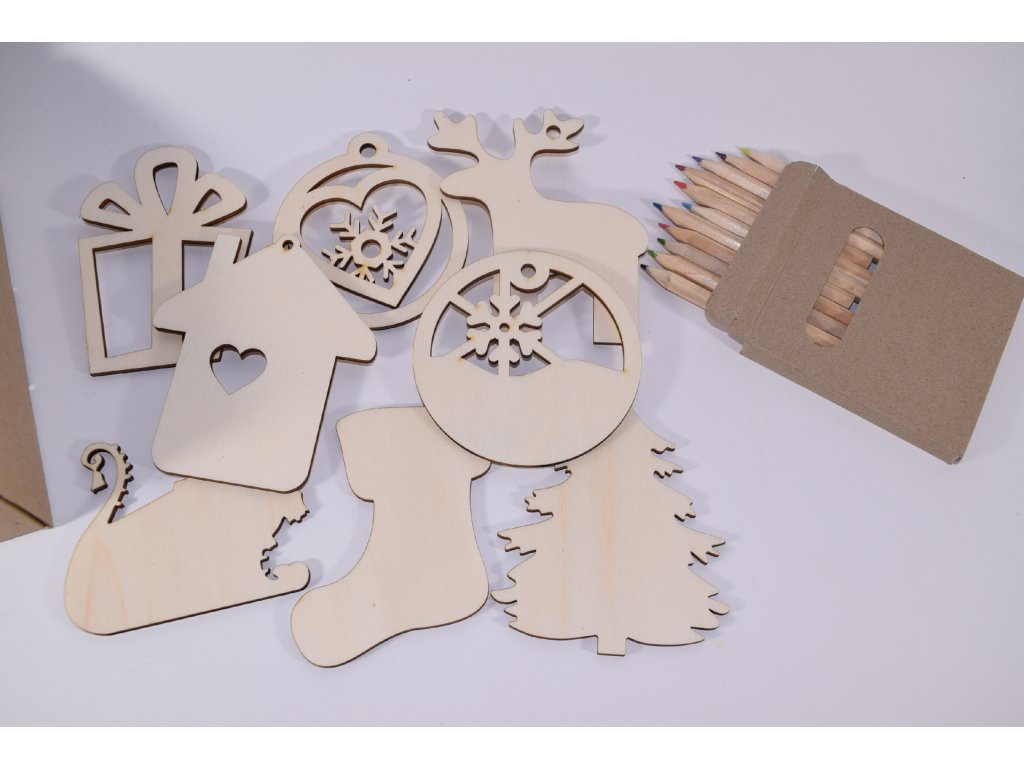 Kreatívna sada s drevenými vianočnými ozdobami, ktoré si deti môžu samé vymaľovať. Ideálne pre školy, škôlky, družiny aj domáce tvorenie. V sade nájdete 8 rôznych tvarov + balenie farbičiek v krabičke.