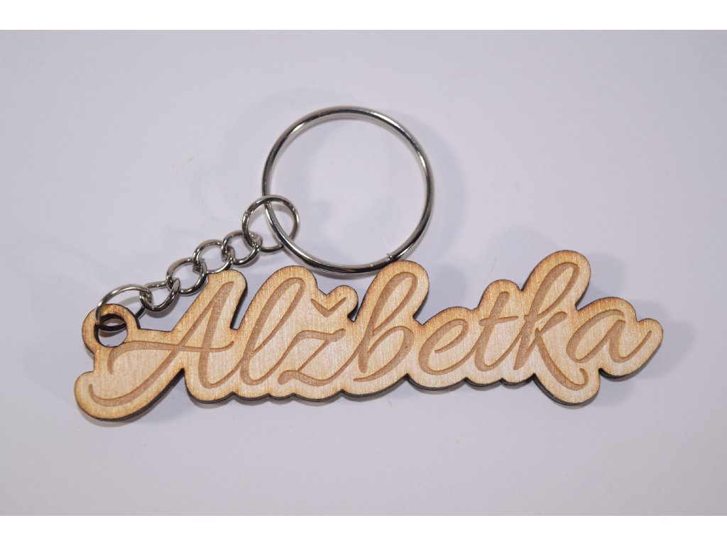 Originálna drevená kľúčenka s menom vyrezávaná a gravírovaná laserom.