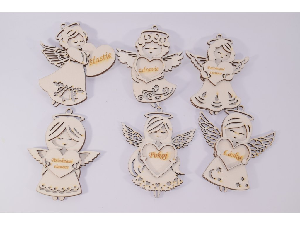 Sada 6 drevených 3D anjelikov – gravírované vianočné ozdoby | Gravit
