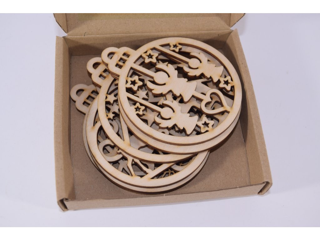 Ozdoby sú vyrezávané laserom s presnosťou a jemným detailom, určené na zavesenie na stromček, do okna či na veniec.