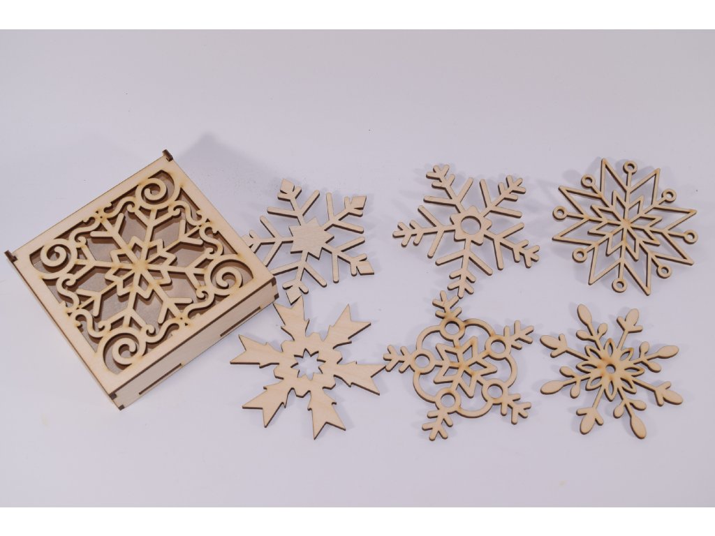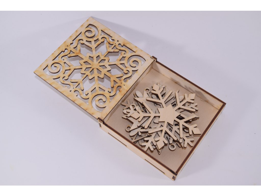 Táto sada drevených vyrezávaných vločiek je uložená v luxusnej drevenej krabičke s gravírovaným vekom, ktorá dodáva celému baleniu výnimočný vzhľad. Každá vločka je precízne vyrezaná laserom s dôrazom na detail a jemnosť, čo z nej robí krásnu ozdobu na stromček, do okna alebo na veniec.