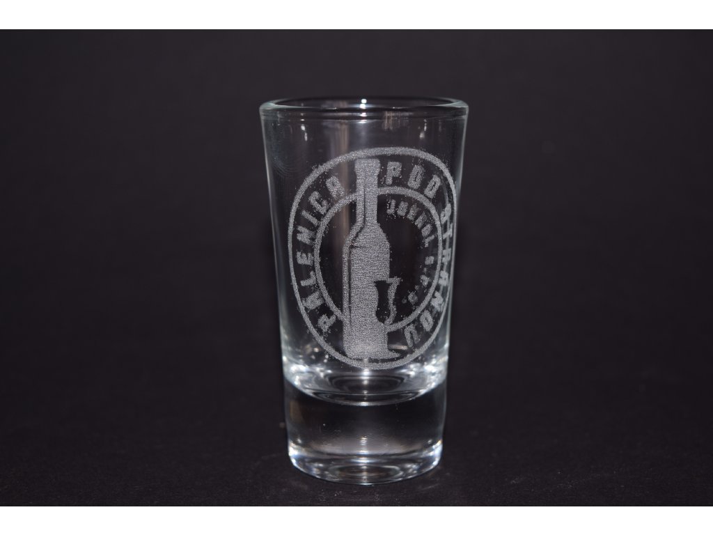 Sklenený štamperlík s gravírovaním - logo na mieru