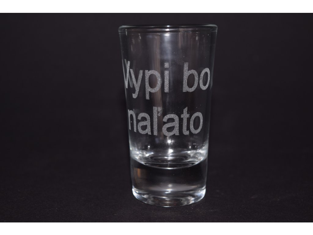 Sklenený štamperlík s gravírovaním - vypi bo naľato