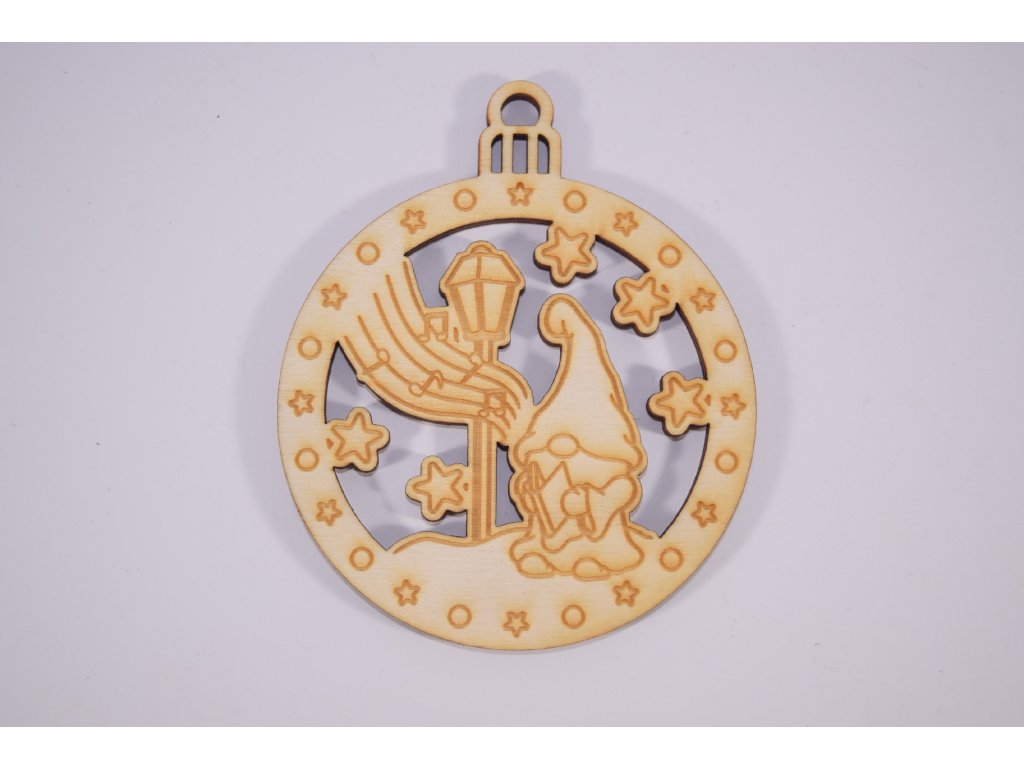 Vianočná drevená guľa s gravírovaným motívom škriatka